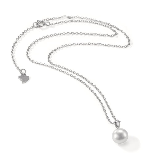 Collier Silber rhodiniert Süsswasserzuchtperle Bouton 7-7.5 mm 38-42 cm verstellbar