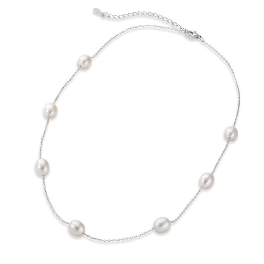 Collier Silber rhodiniert Süsswasserzuchtperle Oval, 7 Perlen 6.5-7 mm 40-45 cm verstellbar