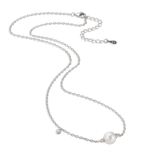 Collier Silber Zirkonia rhodiniert Süsswasserzuchtperle Rund 7.5-8 mm 40-45 cm verstellbar