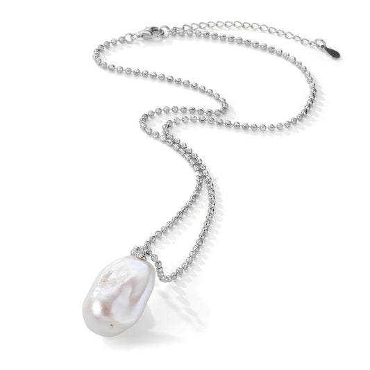 Collier Silber rhodiniert Süsswasserzuchtperle Barock 40-45 cm verstellbar