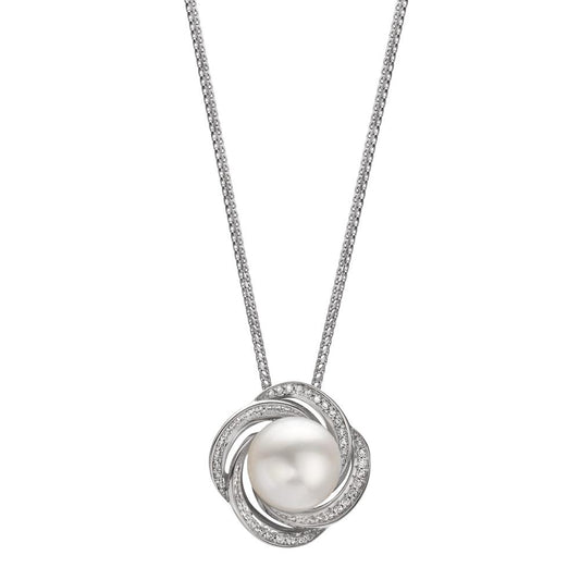 Anhänger 750/18 K Weissgold Diamant weiss, 0.32 ct, 52 Steine, Brillantschliff, w-si Süsswasserzuchtperle weiss, 11.5 mm Ø20 mm