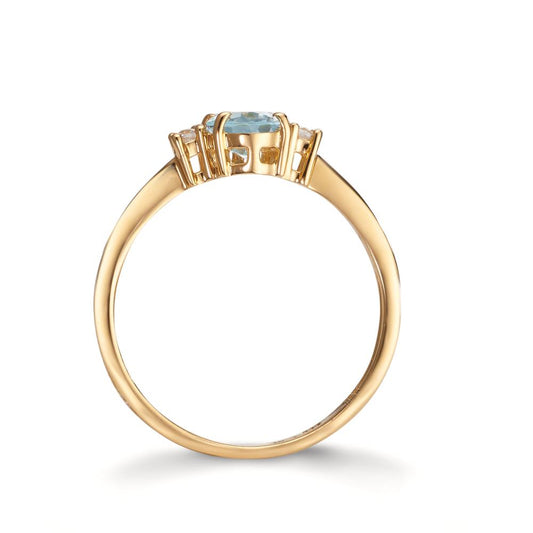 Fingerring 585/14 K Gelbgold Topas blau, 0.15 ct, Zirkonia 2 Steine
