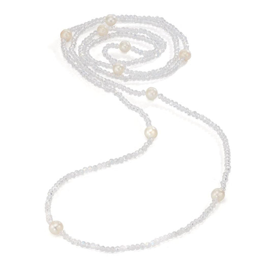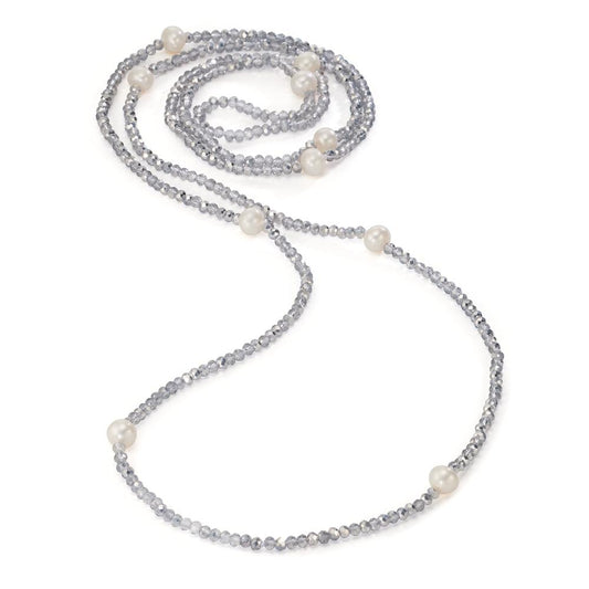 Collier Kristall silbern, 3 mm Süsswasserzuchtperle, 10 Perlen 6.5-7 mm 100 cm