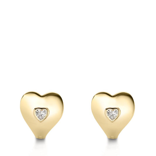 Klappcreolen Silber Zirkonia 2 Steine, Herz gelb vergoldet Herz