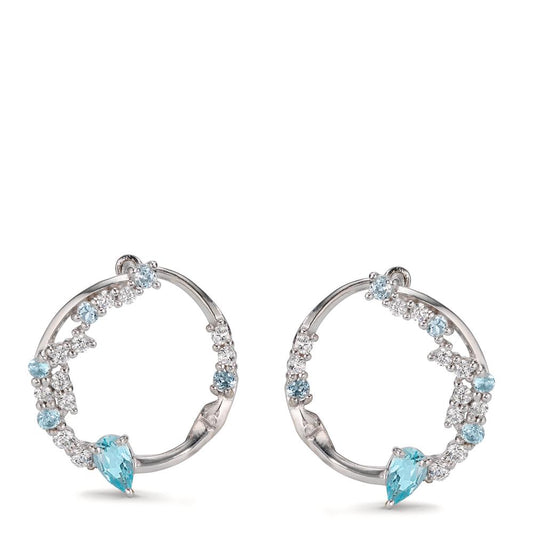 Klappcreolen Silber Topas 12 Steine, Zirkonia weiss, 20 Steine rhodiniert