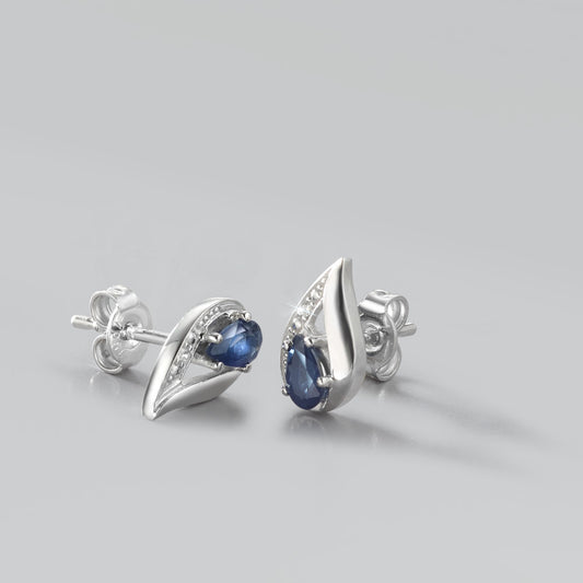 Ohrstecker 750/18 K Weissgold Saphir blau, 2 Steine, Tropfen, Diamant weiss, 0.01 ct, w-pi1