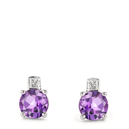 Ohrstecker 750/18 K Weissgold Diamant weiss, 0.01 ct, 2 Steine, facettiert, p1, Amethyst 2 Steine