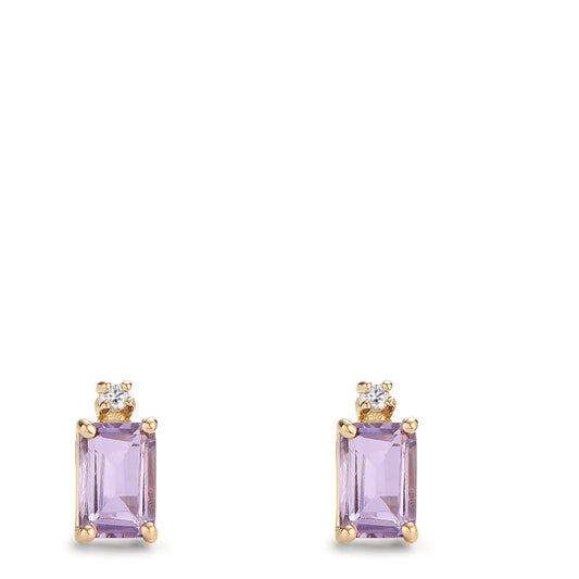 Ohrstecker 750/18 K Gelbgold Amethyst 1.20 ct, 2 Steine, Diamant 0.03 ct, 2 Steine, w-si