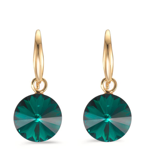 Ohrhänger Silber Zirkonia grün, 2 Steine gelb vergoldet Ø10 mm