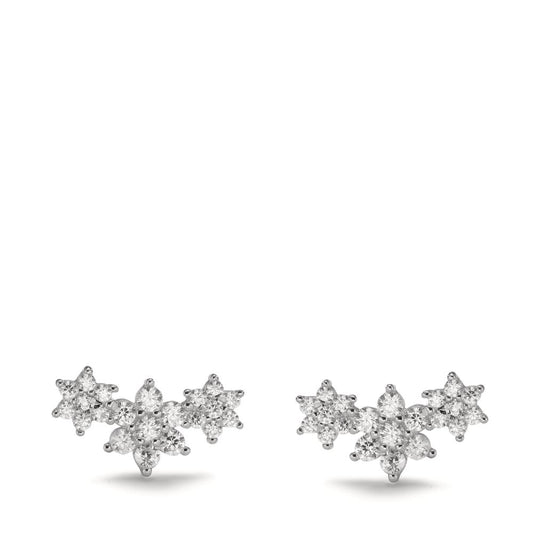 Ohrhänger Silber Zirkonia weiss, 2 Steine rhodiniert Ø10 mm