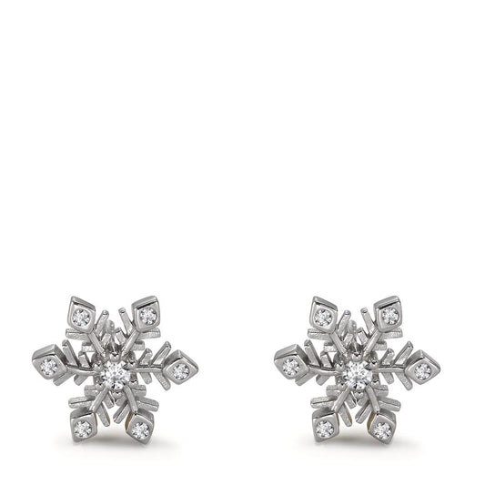 Ohrstecker Silber Zirkonia 14 Steine rhodiniert Schneeflocke Ø9.5 mm