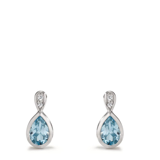 Ohrhänger Silber Zirkonia 4 Steine, Topas blau, 2 Steine rhodiniert