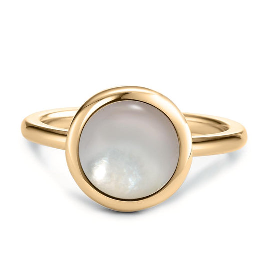 Fingerring Edelstahl gelb IP beschichtet Perlmutt weiss Ø12 mm