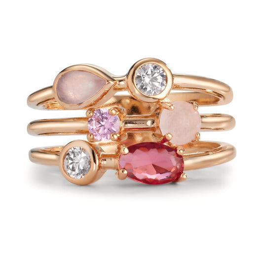 Fingerring Edelstahl Zirkonia weiss rosé IP beschichtet Ø9.5 mm