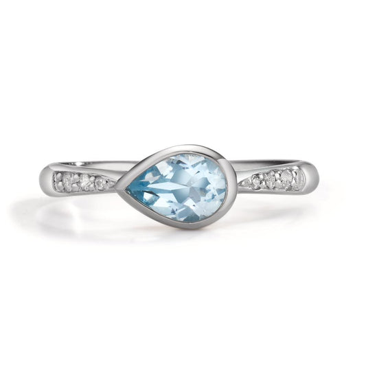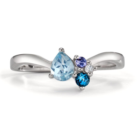 Fingerring Silber Zirkonia 6 Steine, Topas blau rhodiniert