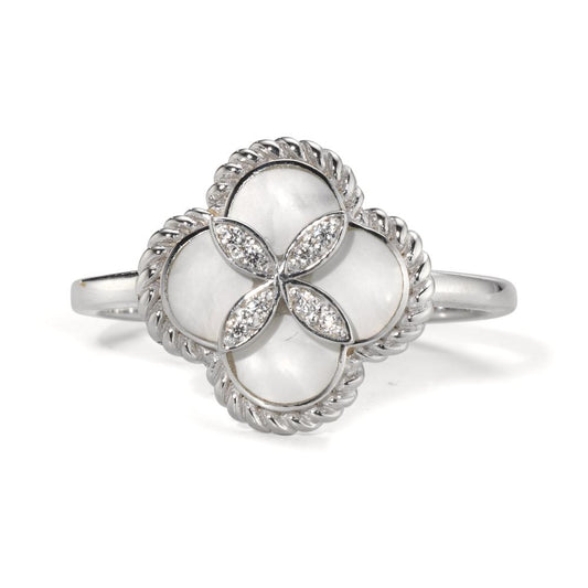 Fingerring Silber Zirkonia 8 Steine rhodiniert Perlmutt Ø12 mm