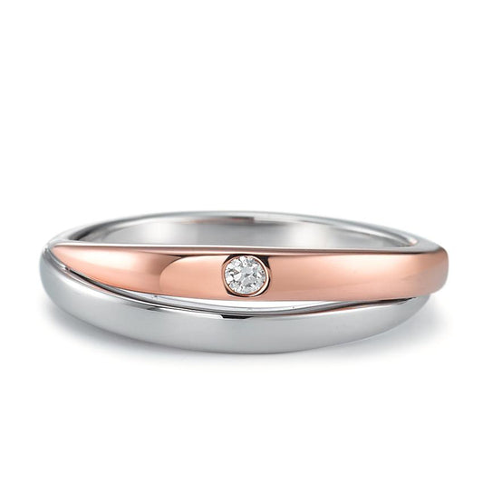 Fingerring 375/9 K Weissgold, 375/9 K Rotgold Diamant 0.03 ct, tw-si