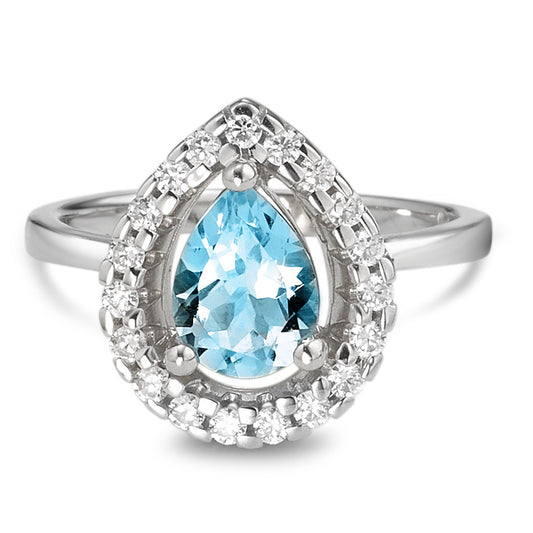 Fingerring 750/18 K Weissgold Topas, Diamant 0.04 ct, 2 Steine, Brillantschliff, w-si