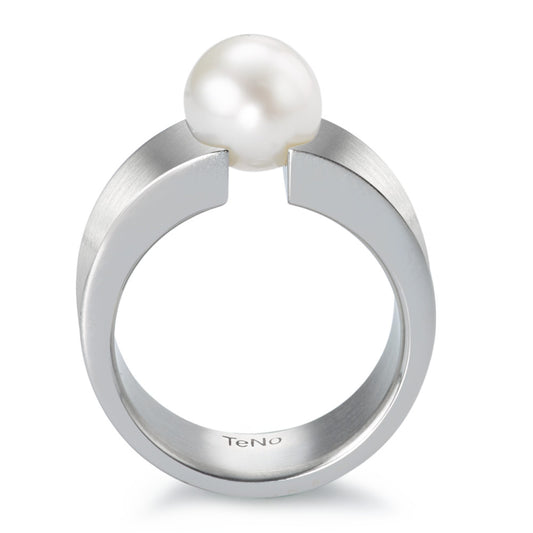 Fingerring Edelstahl Süsswasserzuchtperle weiss, 8 mm