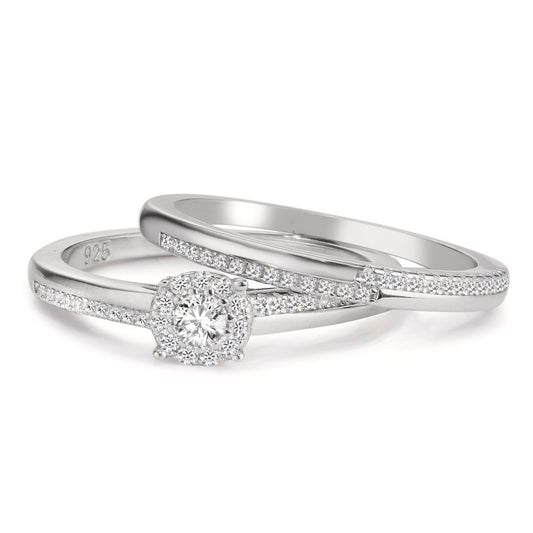 Fingerring Silber Zirkonia 7 Steine rhodiniert