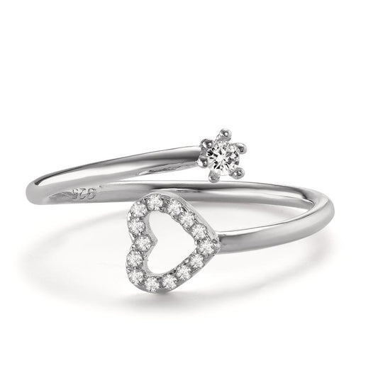 Fingerring Silber Zirkonia 15 Steine rhodiniert Herz