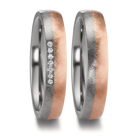 Partnerring Zirkonium, 750/18 K Rotgold Diamant 0.056 ct, 7 Steine, w-si