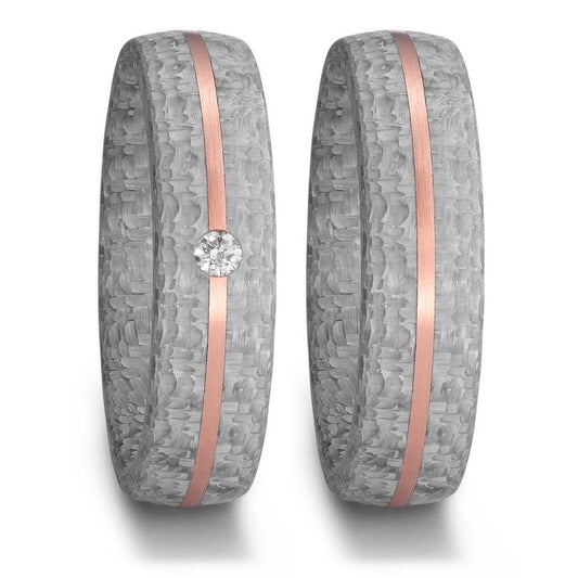 Partnerring 585/14 K Rosegold, Carbon Diamant 0.03 ct, w-si