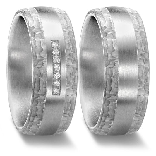 Partnerring Edelstahl, Carbon Diamant 0.035 ct, 5 Steine, w-si