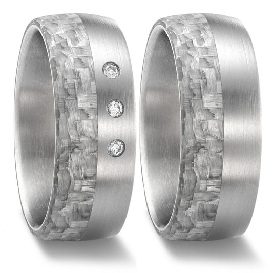 Partnerring Edelstahl, Carbon Diamant 0.06 ct, 3 Steine, w-si
