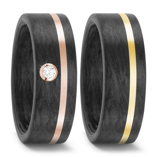 Partnerring Carbon, 750/18 K Rotgold Diamant 0.07 ct, w-si