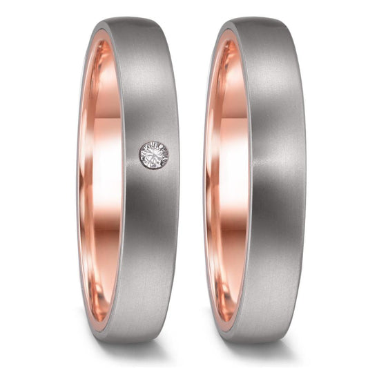 Partnerring Titan, 585/14 K Rotgold Diamant 0.03 ct, w-si