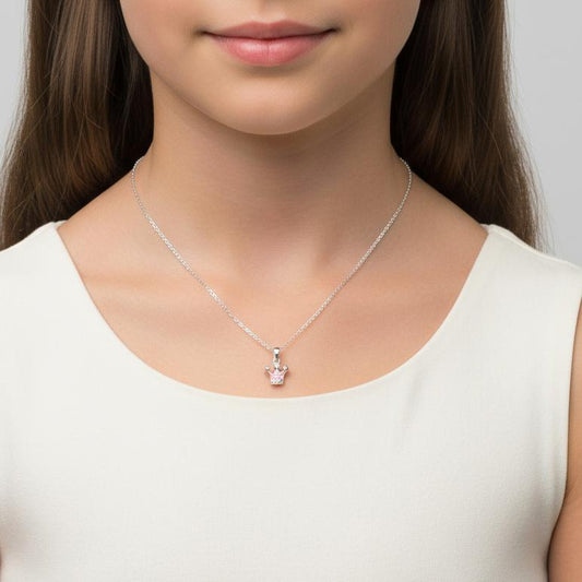 Halskette mit Anhänger Silber Zirkonia 6 Steine lackiert Krone 36-38 cm verstellbar Ø10 mm