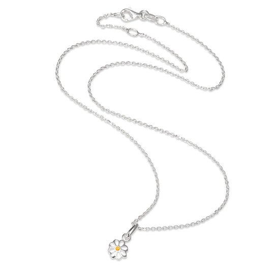 Halskette mit Anhänger Silber Zirkonia lackiert Blume 36-38 cm verstellbar Ø8 mm