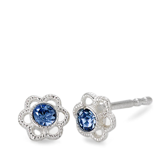 Ohrstecker Silber Blume, Glasstein blau 5 x 5 mm
