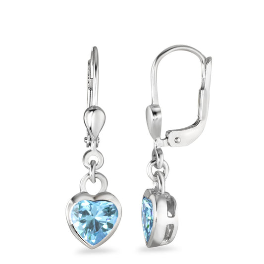 Ohrhänger Silber synth. Aquamarin aqua rhodiniert Herz Ø7 mm