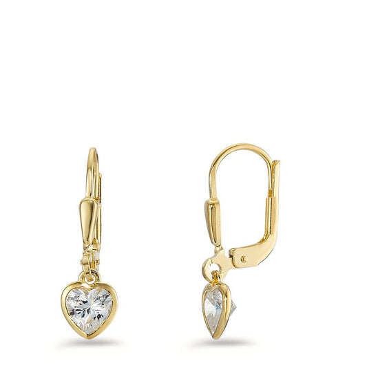 Ohrhänger Silber Zirkonia gelb vergoldet Herz Ø6 mm