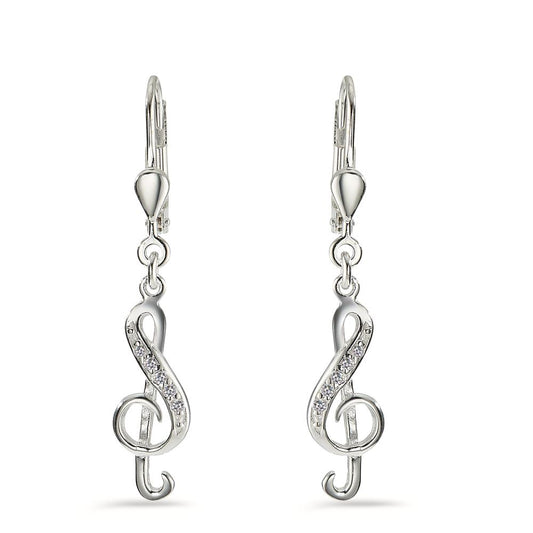 Ohrhänger Silber Zirkonia Notenschlüssel 35 mm