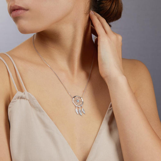 Collier Silber synth. Stein türkis rhodiniert Traumfänger 40-45 cm verstellbar Ø20 mm