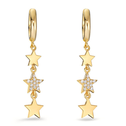 Klappcreolen Silber Zirkonia 8 Steine gelb vergoldet Stern