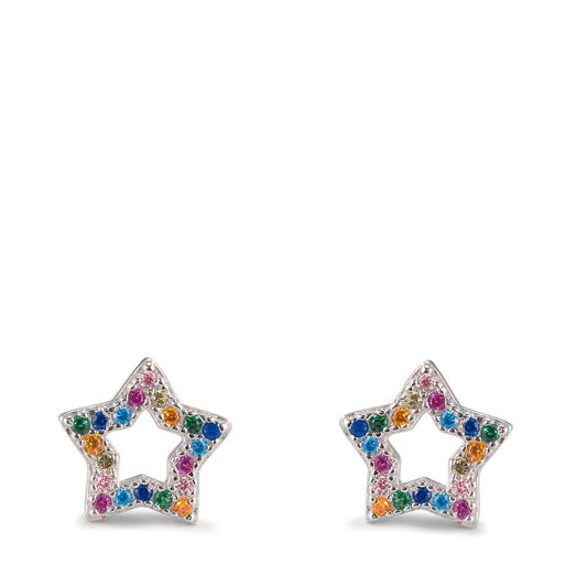 Ohrstecker Silber Zirkonia bunt rhodiniert Stern Ø8.5 mm
