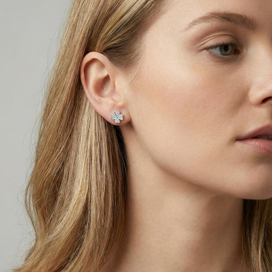 Ohrstecker Silber Zirkonia rhodiniert Kleeblatt Ø7 mm