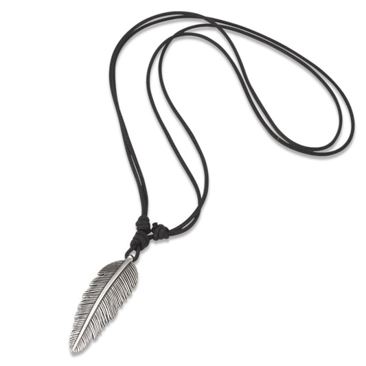 Halsschmuck mit Anhänger Silber, Textil patiniert Feder 40-80 cm verstellbar