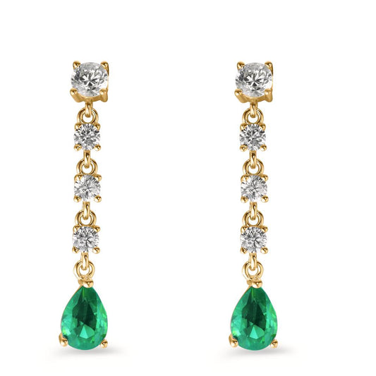 Ohrhänger Silber Zirkonia grün, 10 Steine gelb vergoldet