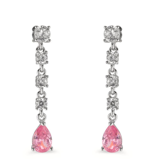 Ohrhänger Silber Zirkonia rosa, 10 Steine rhodiniert