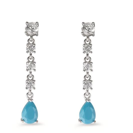Ohrhänger Silber Zirkonia türkis, 10 Steine rhodiniert