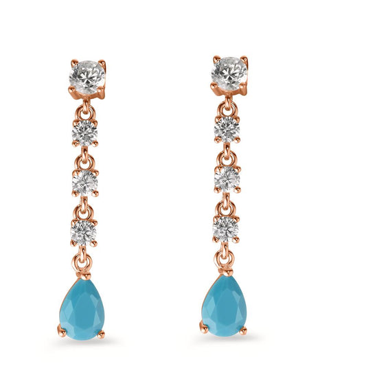 Ohrhänger Silber Zirkonia türkis, 10 Steine rosé vergoldet