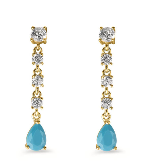 Ohrhänger Silber Zirkonia türkis, 10 Steine gelb vergoldet