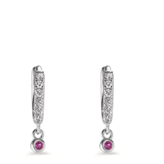 Klappcreolen Silber Zirkonia pink, 16 Steine rhodiniert