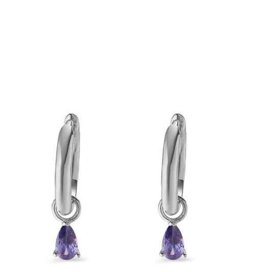 Klappcreolen Silber Zirkonia violett, 2 Steine rhodiniert