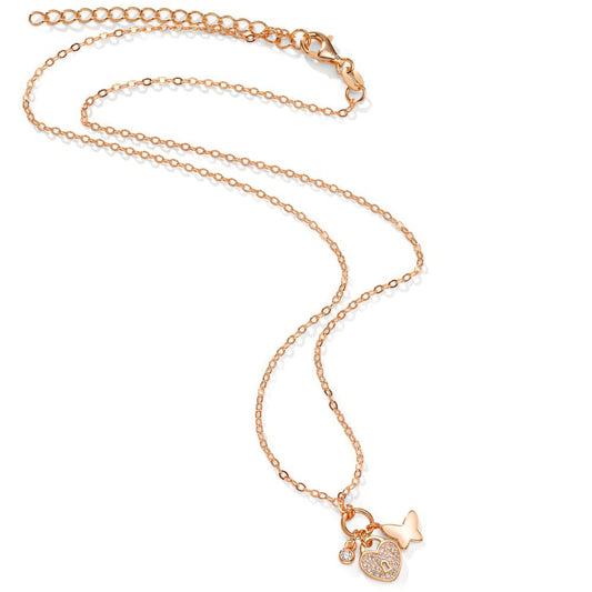 Collier Silber Zirkonia rosé vergoldet Herz Schmetterling 40-45 cm verstellbar